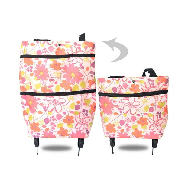 Foldable Shopping Bag Cart Trolley Bag With Wheels Grocery Tote Collapsible Handbag Walmart Com